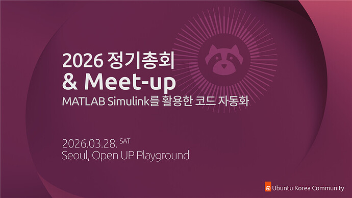 2026년 3월 서울 지역 밋업은 정기총회와 함께 MARU님의 "바이브코딩의 시대에 능력있는 개발자는 더 중요해진다! " 발표, 김한욱님의 MATLAB Simulink를 활용한 코드 자동화 세미나가 함께 진행될 예정입니다. 평소 커뮤니티 운영에 관심 있는 분들도, 리눅스 환경에서의 소프트웨어 활용에 관심 있는 분들도 많은 참여 부탁드립니다!