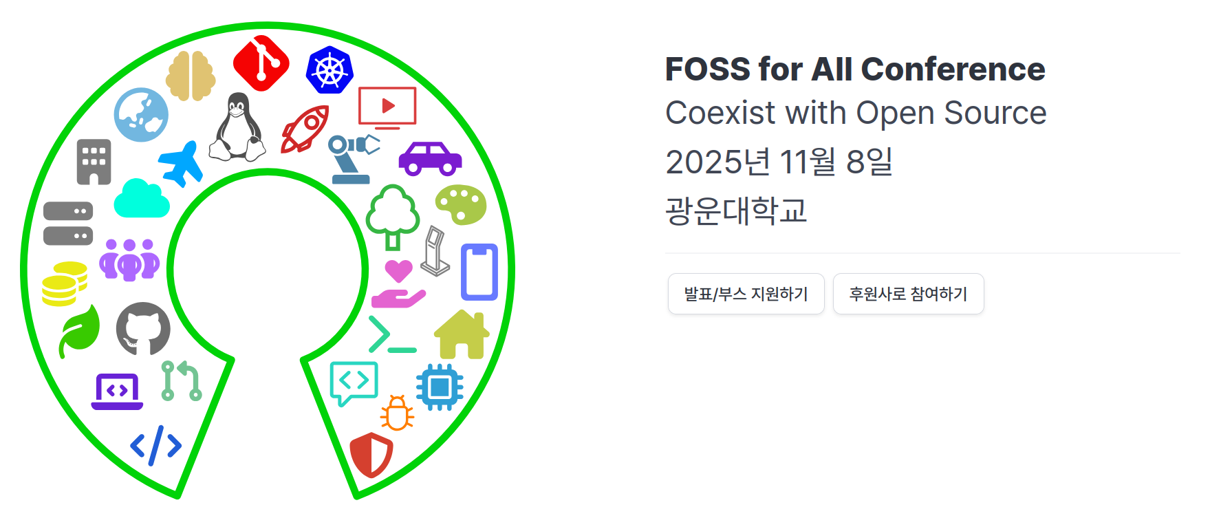 다가오는 FOSS for All Conference 2025 (11월 8일) 티켓을 총 4분께 무료로 드리는 이벤트를 진행합니다!