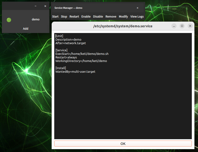 기본적으로 sudo 권한이 필요한 작업이 주되다보니 systemctl 제어 관련 백엔드 데몬 시스템과 GUI프로그램을 나눠서 IPC소켓으로 통신하도록 만들어보았습니다.