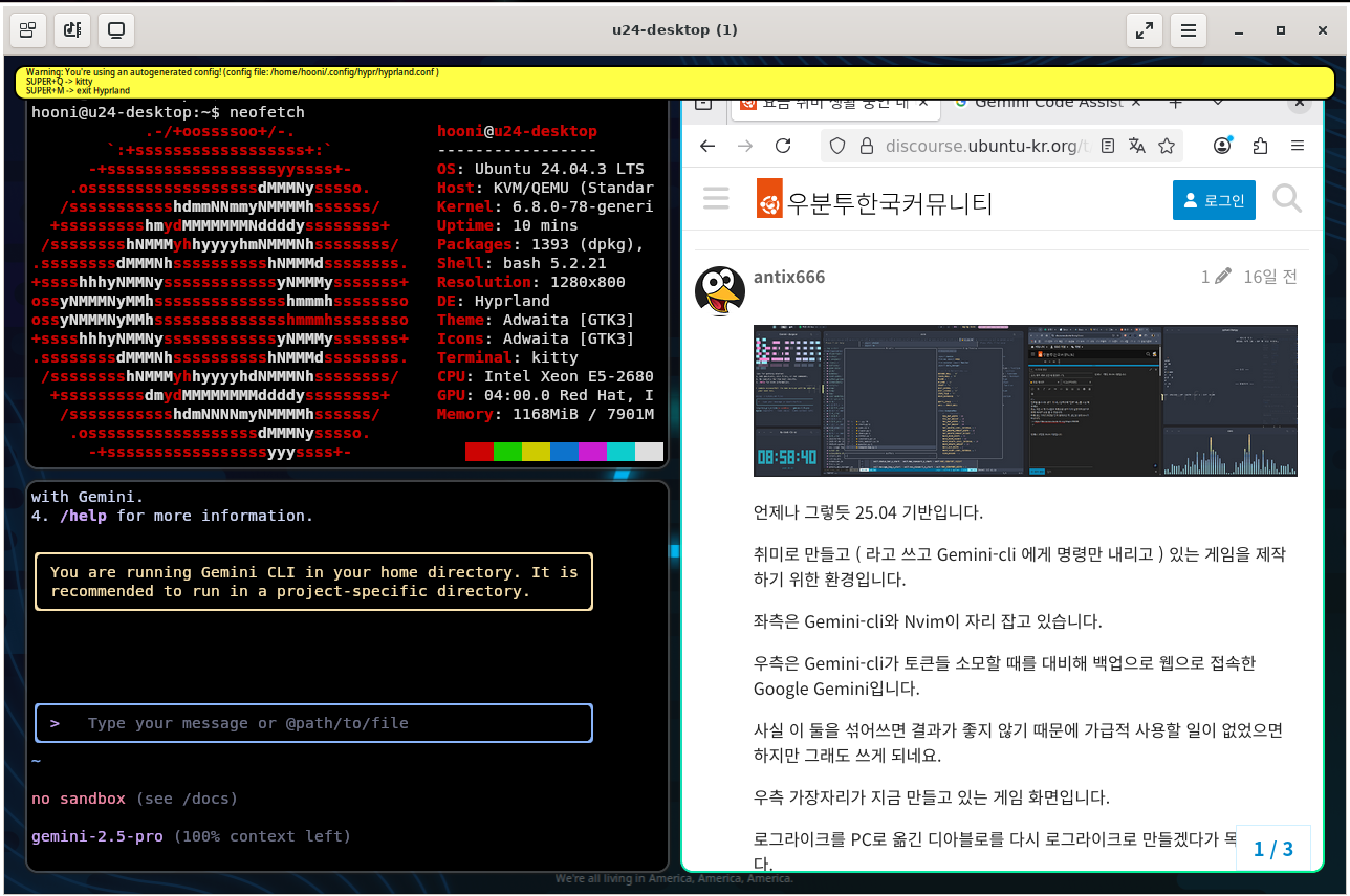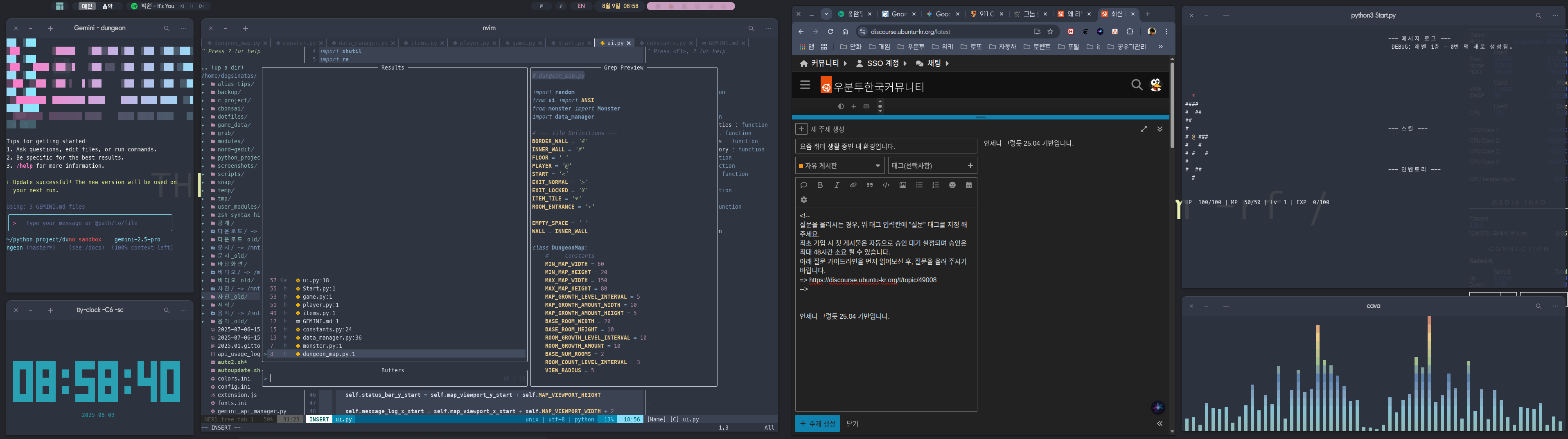좌측은 Gemini-cli와 Nvim이 자리 잡고 있습니다.