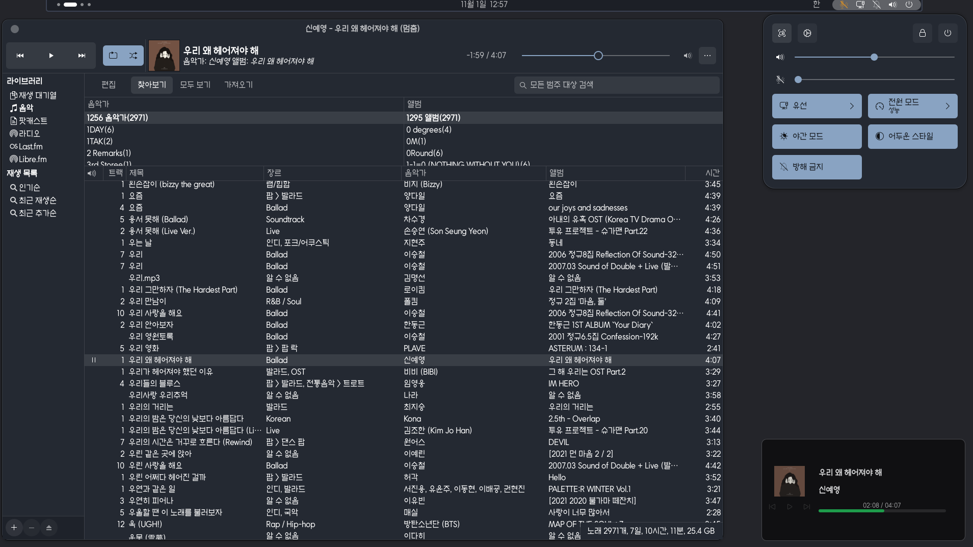 현재는 리듬 박스만 지원하고 있습니다. 내부에 스펙트럼을 표시해봤는데 별로네요. 그냥 스펙트럼 부분을 삭제하고 다시 완성했습니다. 나름 깔끔합니다. Xorg에서는 Sticky 기능이 있습니다.