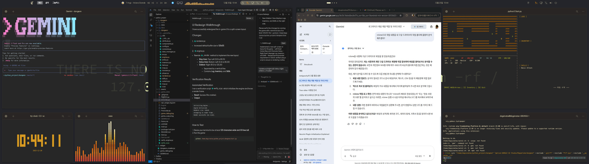 좌측의 화면은 GEMINI cli와 Antigravity입니다.