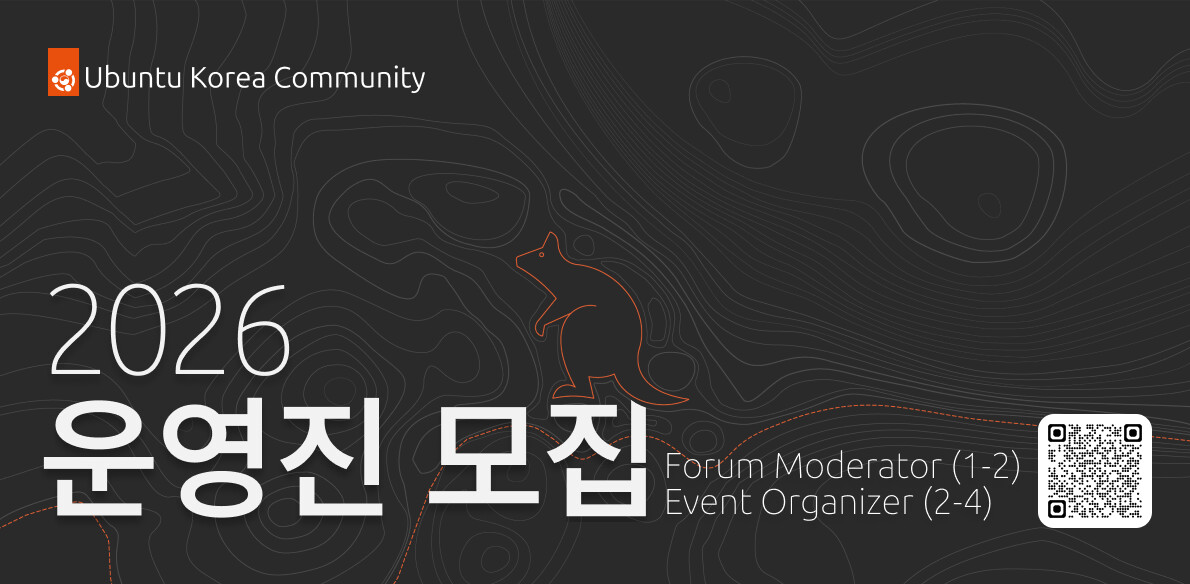 안녕하세요! 올해 2025년 우분투한국커뮤니티 운영진 모집에 많은 관심을 가져 주셔서 감사합니다! 평소 커뮤니티에 애정을 가지고 계신 분, 커뮤니티에 적극적으로 참가하고자 하시는 분, 새로운 아이디어가 있으신 분, 커뮤니티의 다양한 활동을 주도해 보고 싶으신 분들을 포함하여 모든 분을 환영하니 관심이 있으신 분의 많은 지원을 바랍니다. 자세한 공고는 포럼 공지글을 참조해주세요.