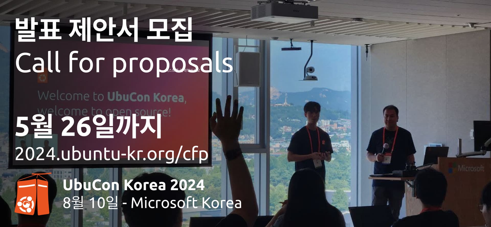 안녕하세요! “우분투와 함께 배포하기(Deploy with Ubuntu)” 주제로 진행되는 UbuCon Korea 2024 발표자 모집 마감이 2024-05-26T14:59:00Z 까지 연장 되었음을 알려 드립니다.