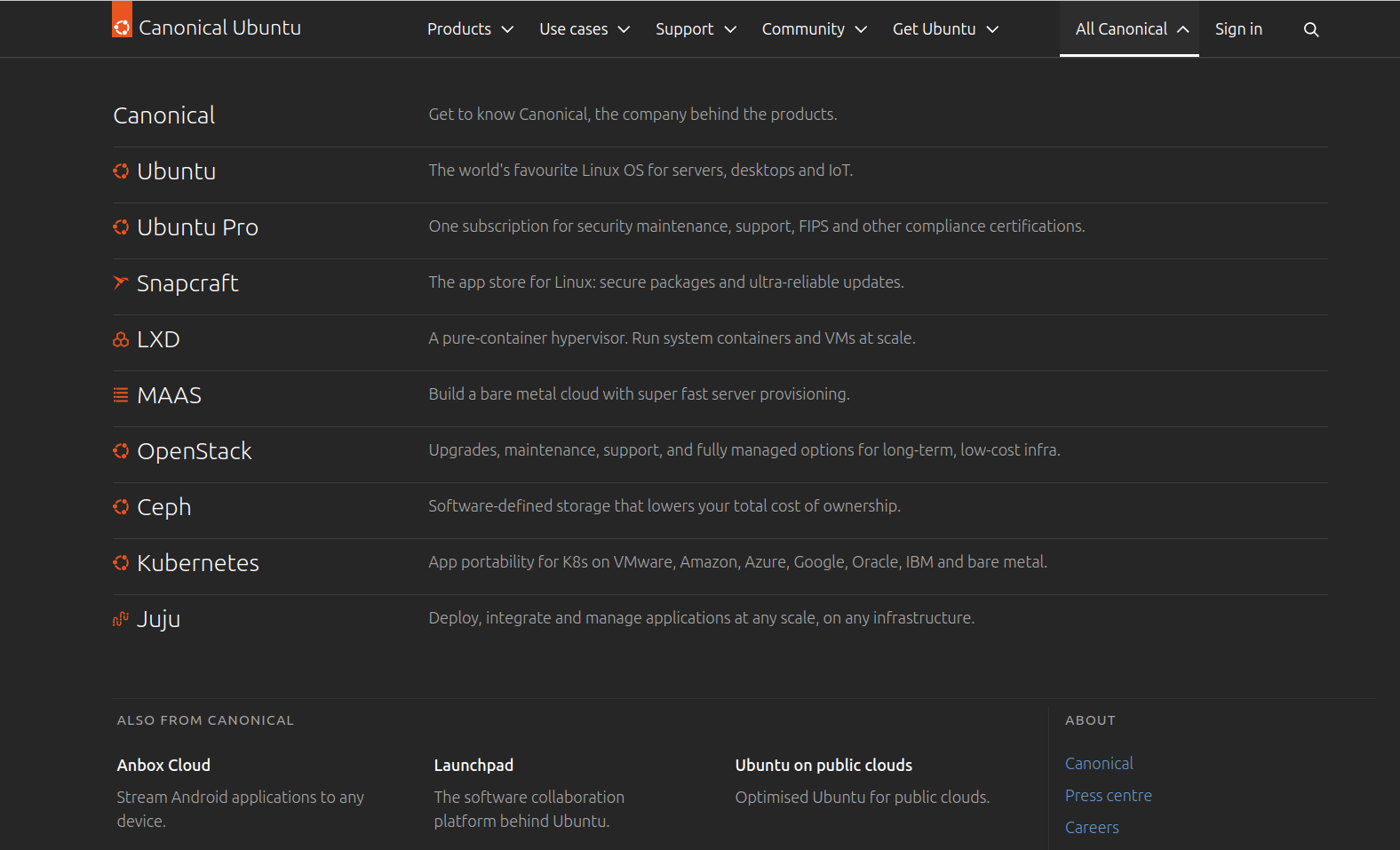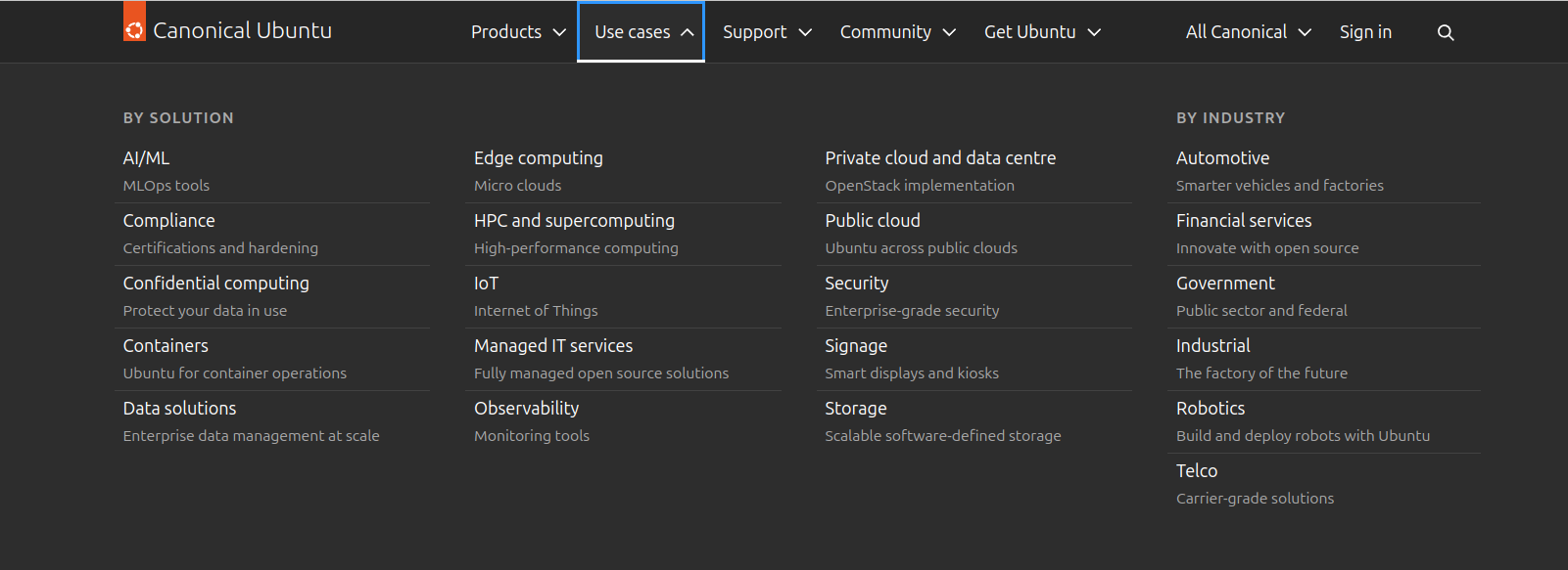 그래도 공통적으로 떠올리는 것이라면, 우분투 라는 “리눅스 배포판” 이 떠오르실 텐데요. 오늘날 우분투 생태계는 그저 리눅스 배포판을 사용하는 것 그 자체에 대한 것 뿐만이 아니라, 그 이상으로 다양하다고 할 수 있습니다. 우분투 홈페이지인 ubuntu.com 에 방문 하셔서, 상단에 “Products”, “Use Cases”, “All Canonical” 등 메뉴를 열어서 한번 훝어 보시기를 추천합니다. 우분투 생태계에 어떤 오픈소스가 있는지, 우분투의 분야별 사용 사례 등을 한눈에 훝어보실 수 있습니다. 이 중에서 본인이 다뤄본 오픈소스가 있다면 이와 관련된 주제를 선택 해 보는것도 좋은 방법입니다.
